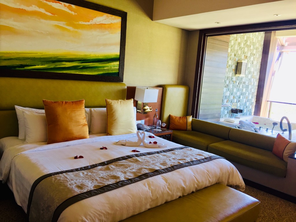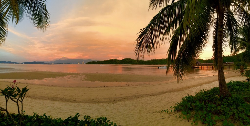 After a day in KL, we hopped on a short flight to Kota Kinabalu and headed straight to Shangri-La Rasa Ria to kick-start our honeymoon in style. Everything about this place makes it one of the best hotels we’ve stayed at. The hotel is split into two wings, Garden Wing and Ocean Wing. The Ocean Wing (or as we called it the “adults only” wing) is worth every penny. The room was out of this world, with a large balcony and outdoor spa bath overlooking the sea (with a menu of treatments available any time of day). After a day of relaxing by the pool, we enjoyed cocktails and canapes while admiring Borneo’s famous sunsets.